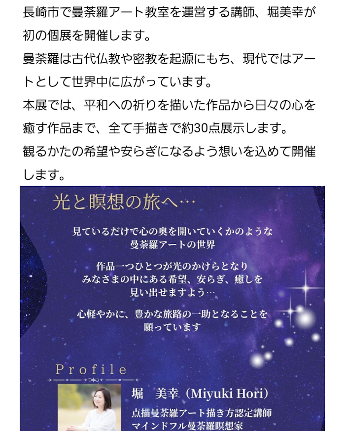 ー光と瞑想の旅ー曼荼羅アート 堀美幸展